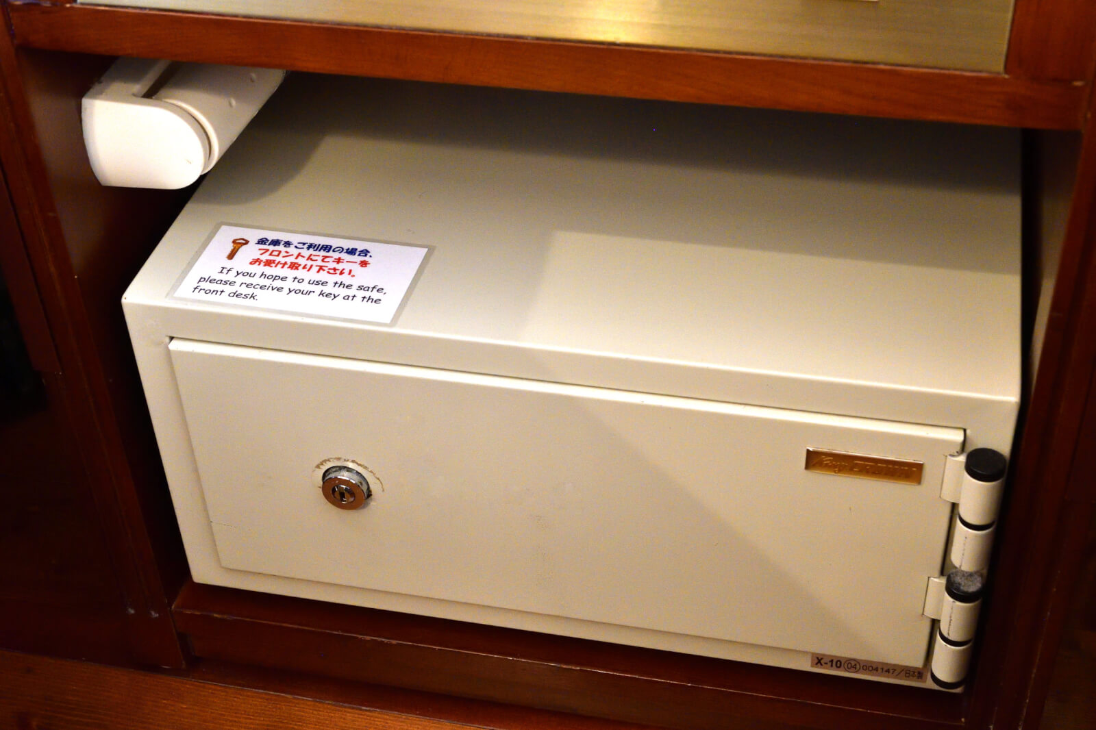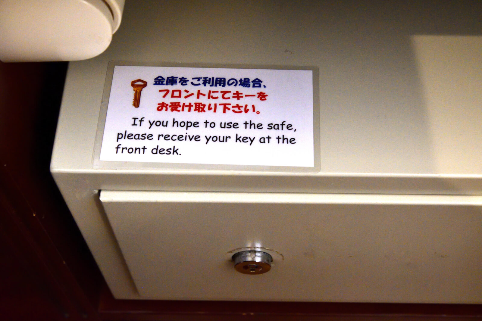 金庫をご利用の場合は、フロントにて金庫の鍵を受け取ってください。