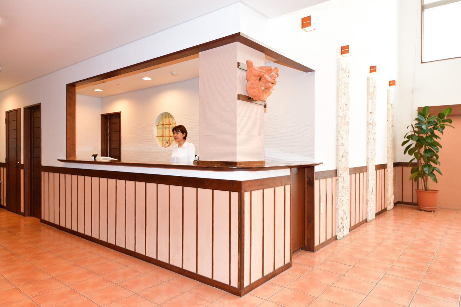 お客様をお出迎えする当館スタッフです。お困りごとはこちらまで。